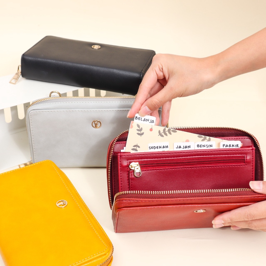 Bella Wallet, Dompet organizer cantik dengan tali sling bag dilengkapi dengan 5 amplop cantik,5 Budget sheet,dan 1 Slot Pulpen