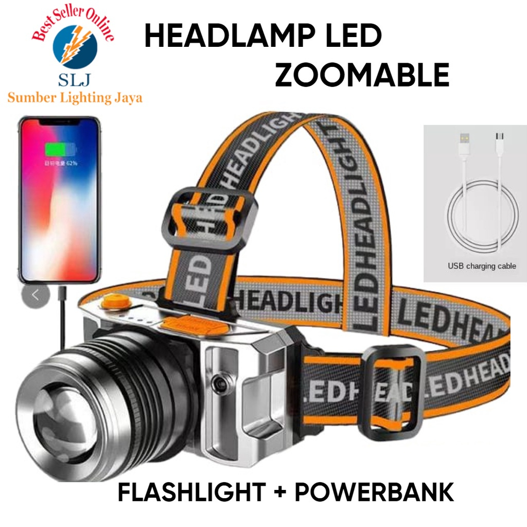 SENTER KEPALA LED COB 50W / HEADLAMP CAS ZOOMABLE BISA JADI POWERBANKSenter kepala Led Cob yang super terang dengan 3 Mode : high,low,dan flash